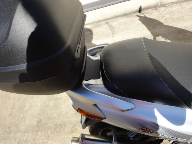 前のシートの時は上のボックスぎりぎりまでシートがあったのでかなり短くなってますね。まぁ某S氏のお買い物に付き合ったときに後ろに乗ってもらいましたが特に不満の声も無かったので2ケツには問題なさそうです。