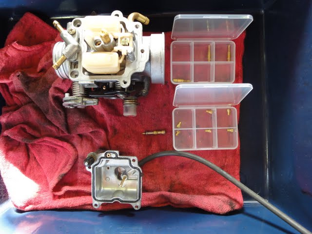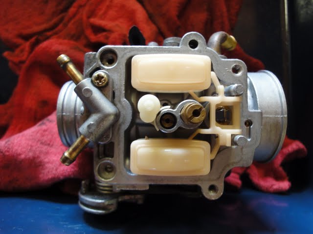 キャブは思っていたより綺麗でした。期待していた虫の詰まりなど微塵も無い感じです