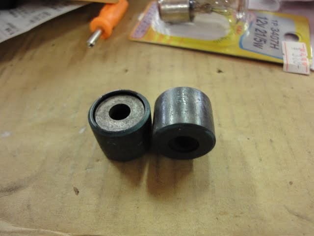 マロッシのバリエータが逝ったり、ハーフプーリーのスプラインが逝ったりと、何かと不具合が多いVXR君。以前にウェイトローラーが一個だけ逝ったため、無理やりマロッシのウェイトローラーを取り付けていましたが、KN企画で20×17の10.5gが売ってたので交換してみました。