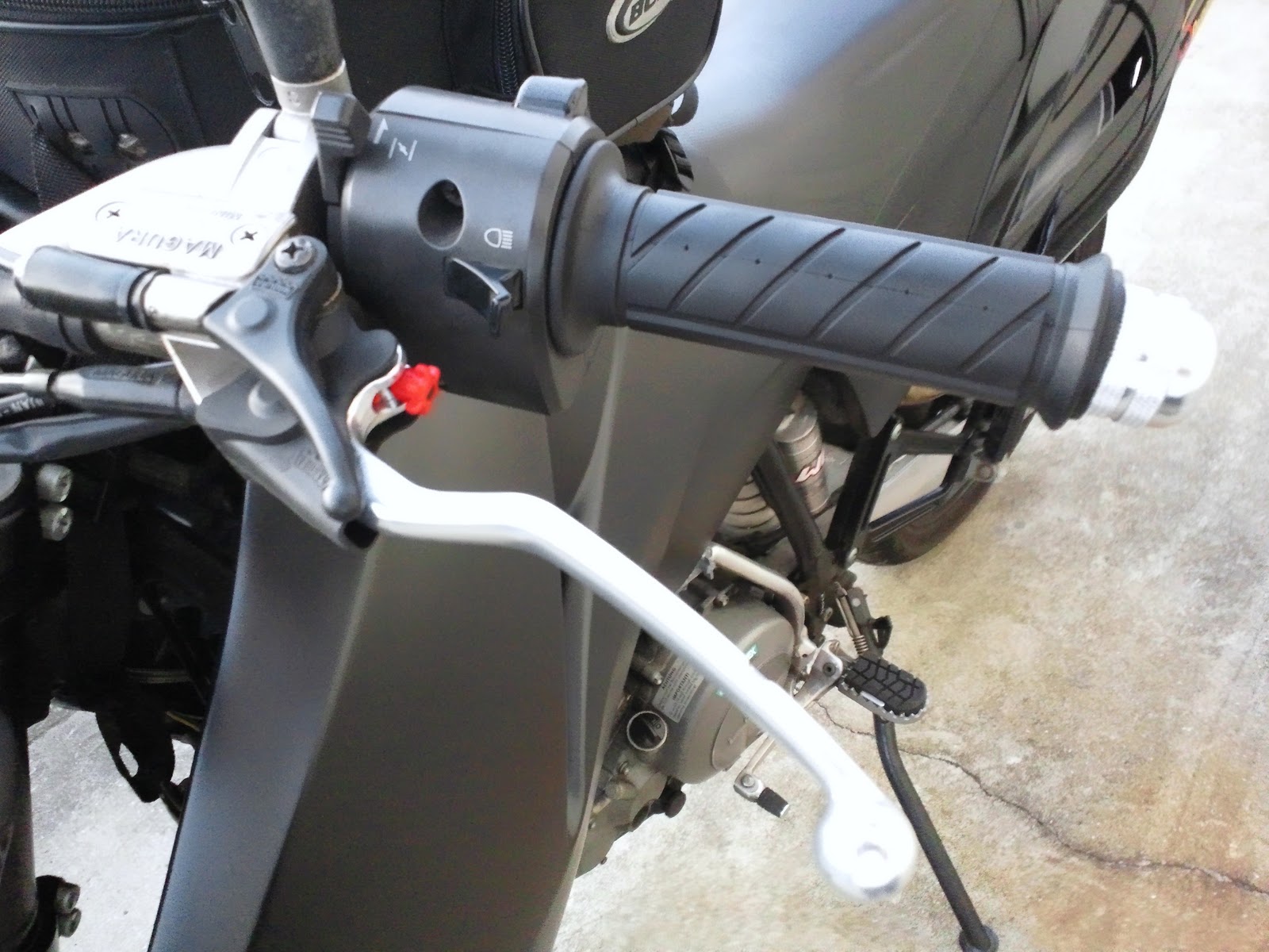 先日のツーリング中にクラッチレバーが折れました。折れたといってもコケて折れたのではなく、いきなりスカスカな感触になり、上の写真の赤いピストンが地面に落ちました…さすが振動大王。こんなところにも影響が出るんですねw