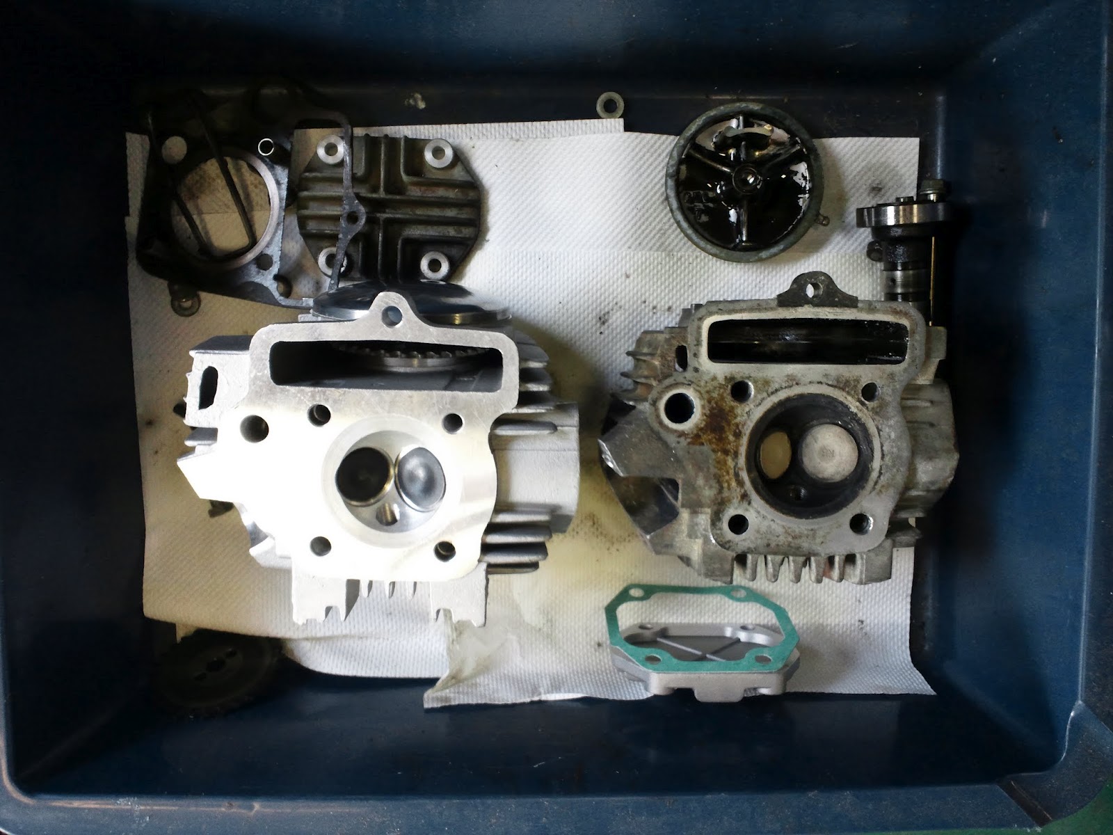 まず、ネジ穴広がったときにヤフオクで4500円のカブ90中華ヘッドが売ってたので購入してみました。なんとなく「対応機種の範囲が広いなー」と思っていたのですが、到着後にノーマルヘッドと比較して、どうしても気になってしまう所がありました。