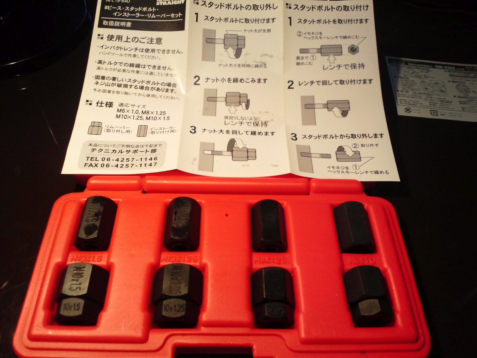 今回スタッドボルトを取り付ける時に「ダブルナット」でも良かったんですが、なんとなく「スタッドボルト インストーラ」を購入。リムーバーも付いてるので便利です。最初にこれ買っとけば良かった><