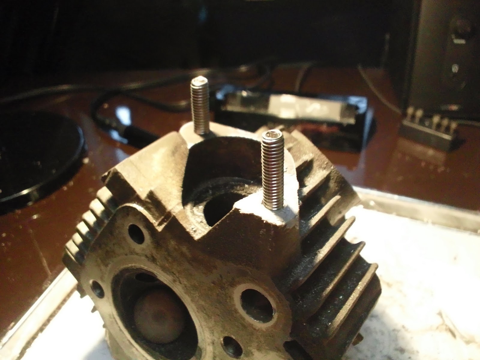 ぽきっと折れたスタッドボルトを外すため、色々やった結果ネジ穴広げて終了してたヘッドが何とか使えるレベルに復活しました。この状態で清掃して組み付ける予定です。