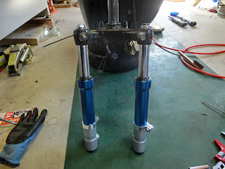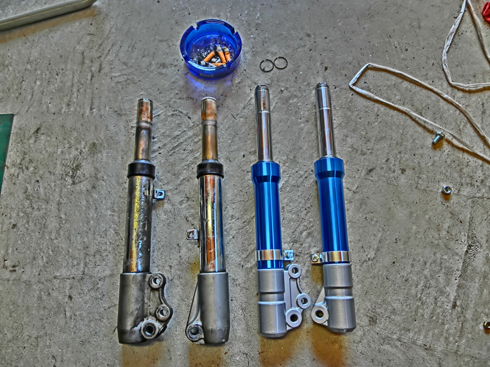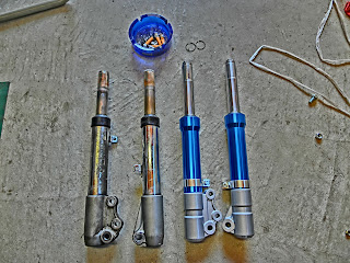 見た目もGoodで純正フォークは片側グリス、片側オイルという変わった仕様ですが、KN企画は両方オイルサスになります。普通の人は新品でもオイル量調整等やるのでしょうが、面倒なのでパスです。
