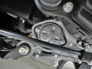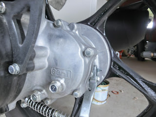 ギアオイルは12㎜のボルトを外すと交換できます。下がドレンボルトで、上が挿入口です。両方外して傾けたりしてオイル抜いた後、下を締めて上から90mlのエンジンオイルを入れます。注射器があればOKですが、ない場合は気合が必要ですね。