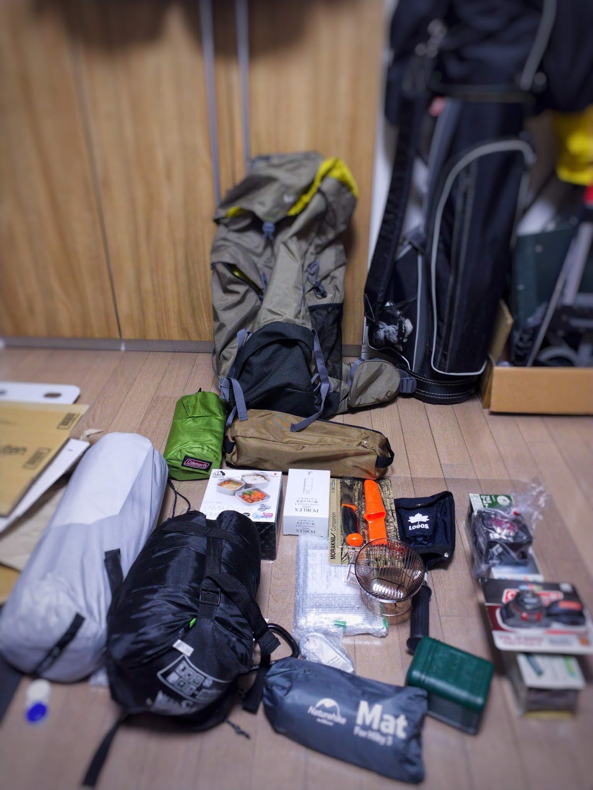 いろいろな人から助言もらいながら、装備を買い揃えていく日々を過ごし、ある程度、揃ったのが上の写真になります。キャンプ道具系はまた個別にポストするとして、今回は「とりあえず始めました」という報告になります(汗。